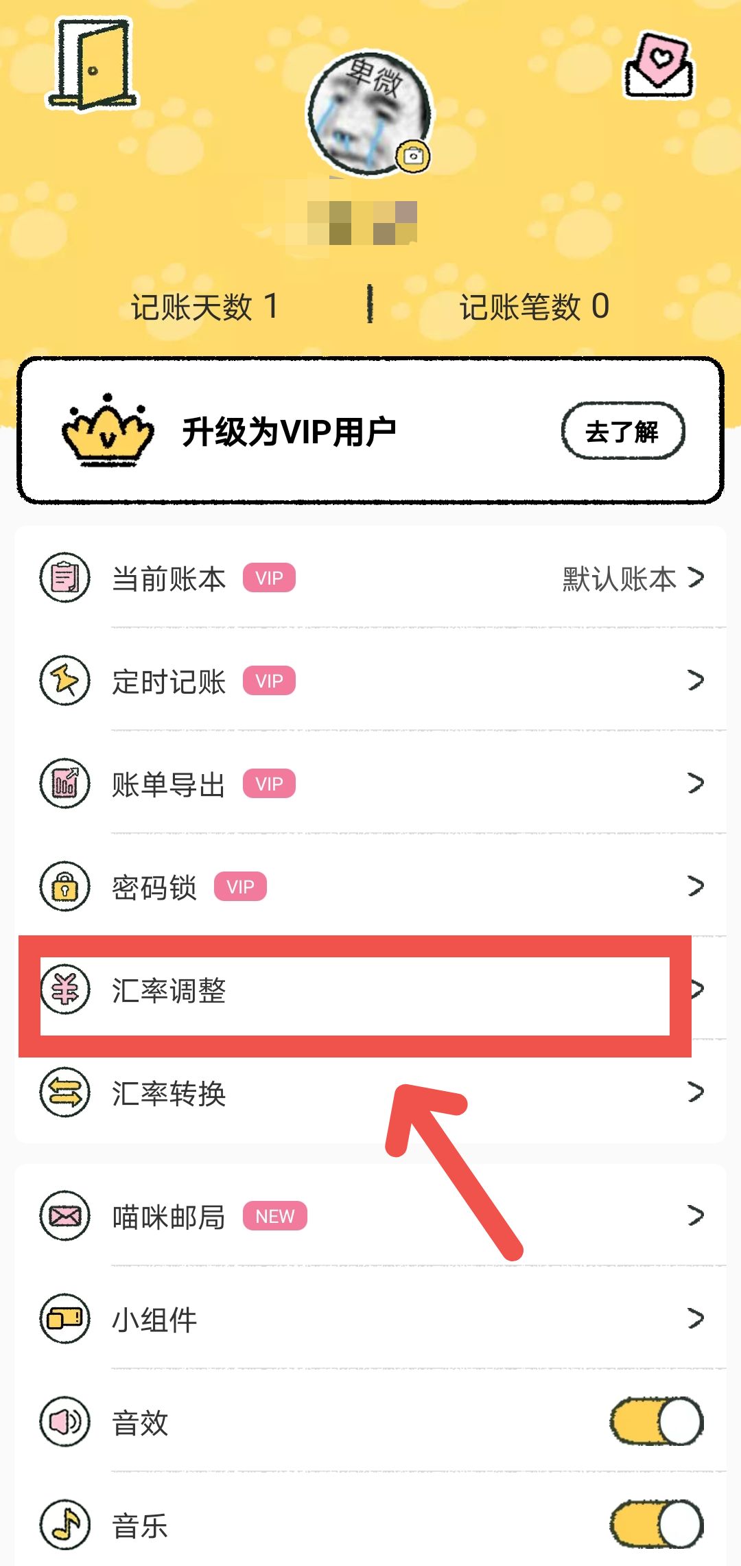 在我的页面,找到并进入汇率调整。