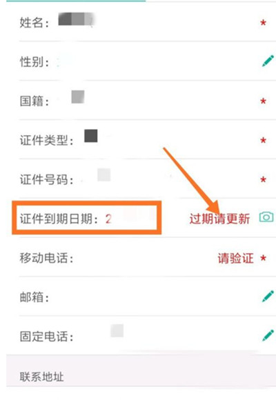 进入之后,就能看到证件到期日期一栏后面就是过期请更新字样,点击之后进行扫脸验证即可。